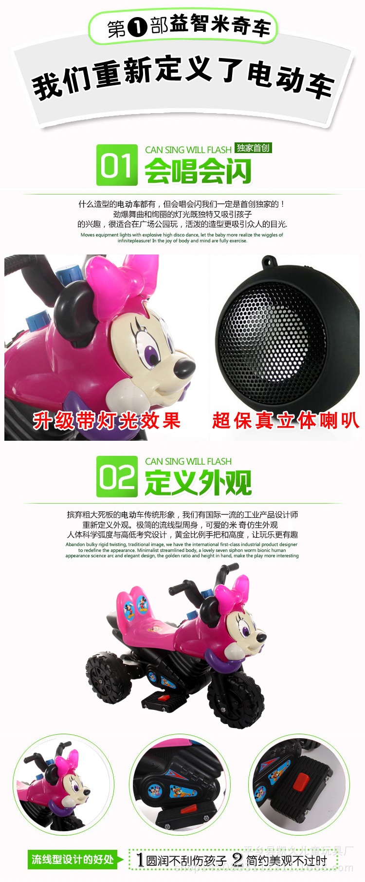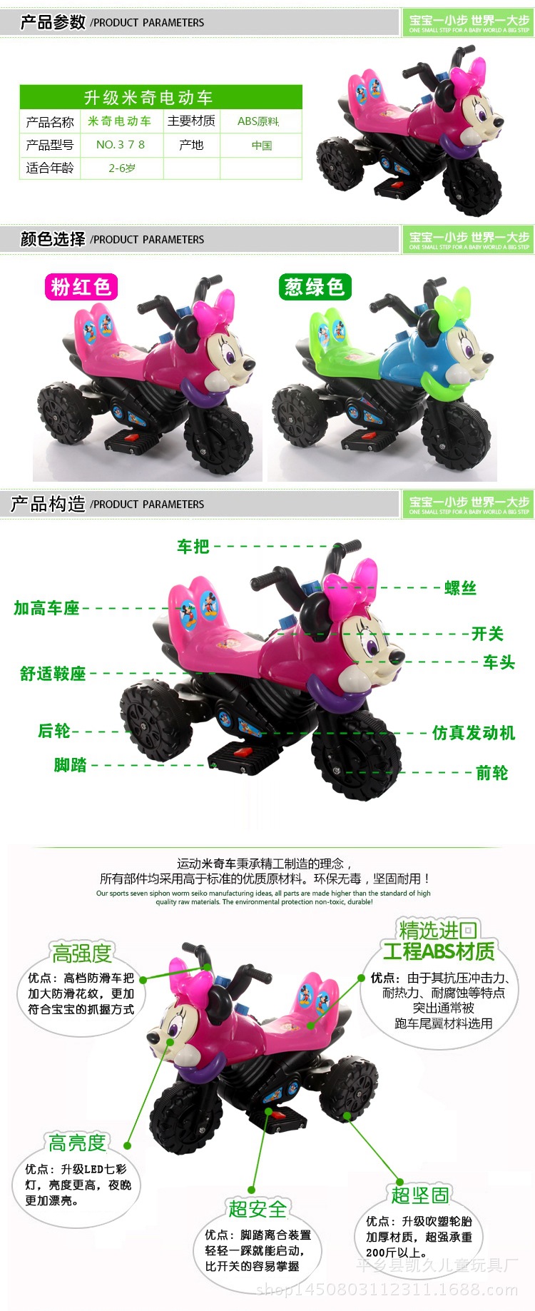 New electric motorcycle wheel is widened, increase body, forward, stop, rewind switch with three gear and antiskid tread, battery capacity is increased 6V4.5AH can play about 2 hours! More details to improve, everything is in order to allow the baby to take a more comfortable, more secure! Functional characteristics: